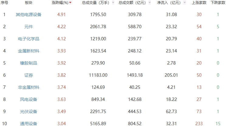 中国经济网络北京8月15日新闻:贝斯今天关闭三个主要股票指数。今天结束时,上海的合并指数为3696.77分,增加了0.83%,销售额为96.62亿元。深圳市成分指数为11634.67点,增长了1.60%,销售额为1283.98亿元。 Chinext指数为2,534.22点,2.61%至652.29亿元人民币。部门,能源设备,组件,电子化学品和其他部门被归类为最佳利润,而银行业则被归类为最佳减少。 A-CARPART市场部门的上升和秋季分类
